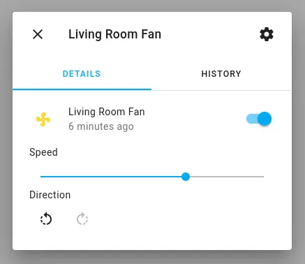With the fan domain you can create components that appear as fans in the Home Assistant frontend. A fan can be switched on or off, optionally has a speed between 1 and the maximum supported speed of the fan, and can have an oscillation and direction output.